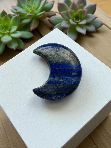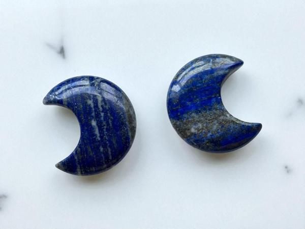 私はずっと大切にしている、今回お届けするのとよく似た三日月型ラピスラズリさんを持っているんです。