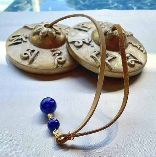このティンシャに、写真ではラピスラズリさんを二つ、お付けしています。