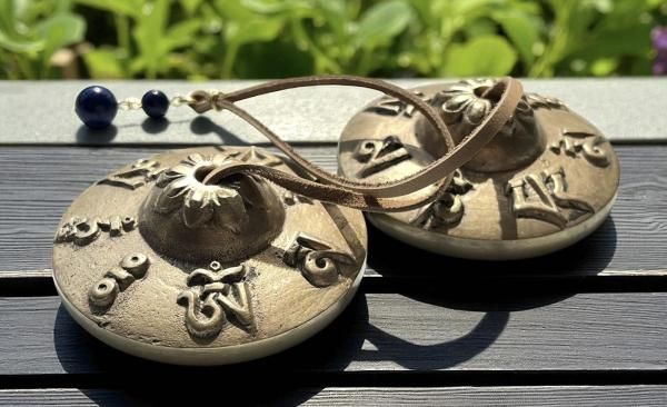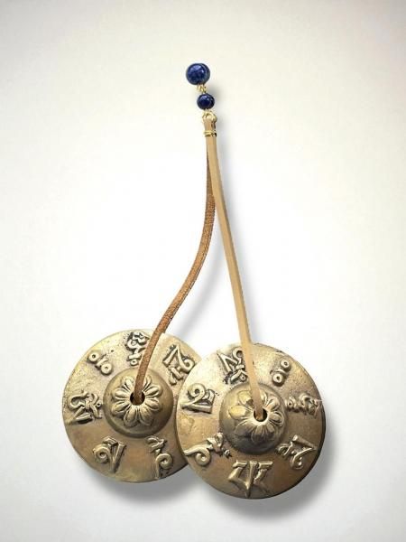 チベット密教で法具として瞑想のために使われてきたという小さいベルで、「チベタンベル」などとも呼ばれます。円盤型の2つのベルからできています。