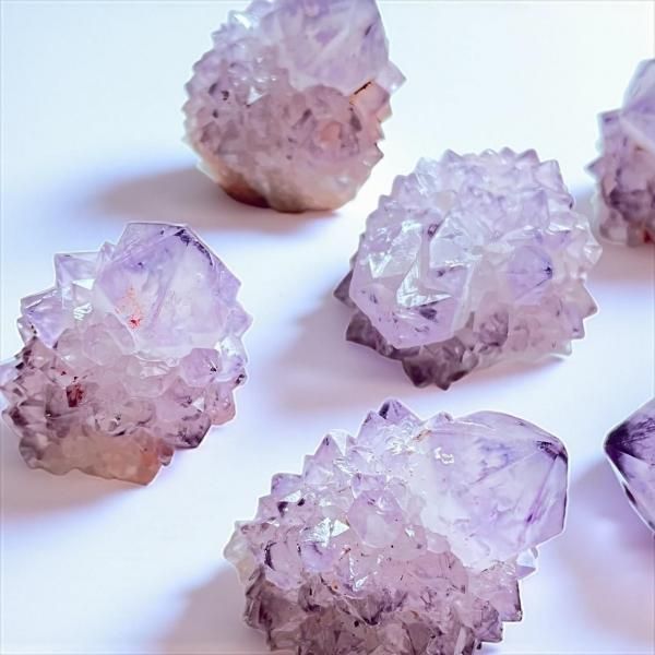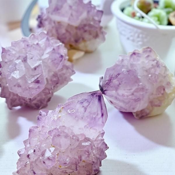 こうした原石さんって小さいものが多いのですが、今回お届けできるアメジストスピリットクォーツさんは、サイズもどっしりしていて、一つ一つの結晶がものすごく美しいです。